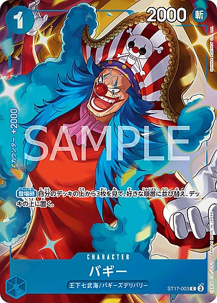 The OPTCG ST17-003 1c Blue Buggy Character card with English card effect.