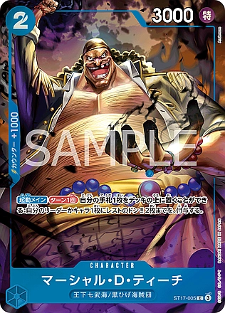The OPTCG ST17-005 2c Blue Marshall.D.Teach Character card with English card effect.