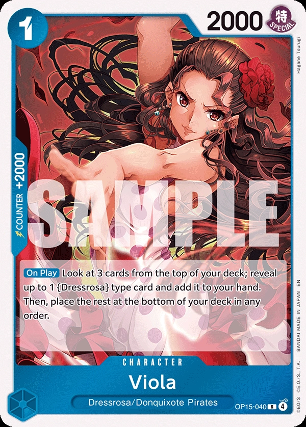 Top placing OP15 Red/Blue (RU) Lucy OP15-002 decklist featuring Dressrosa, Revolutionary Army and Donquixote Pirates type cards.